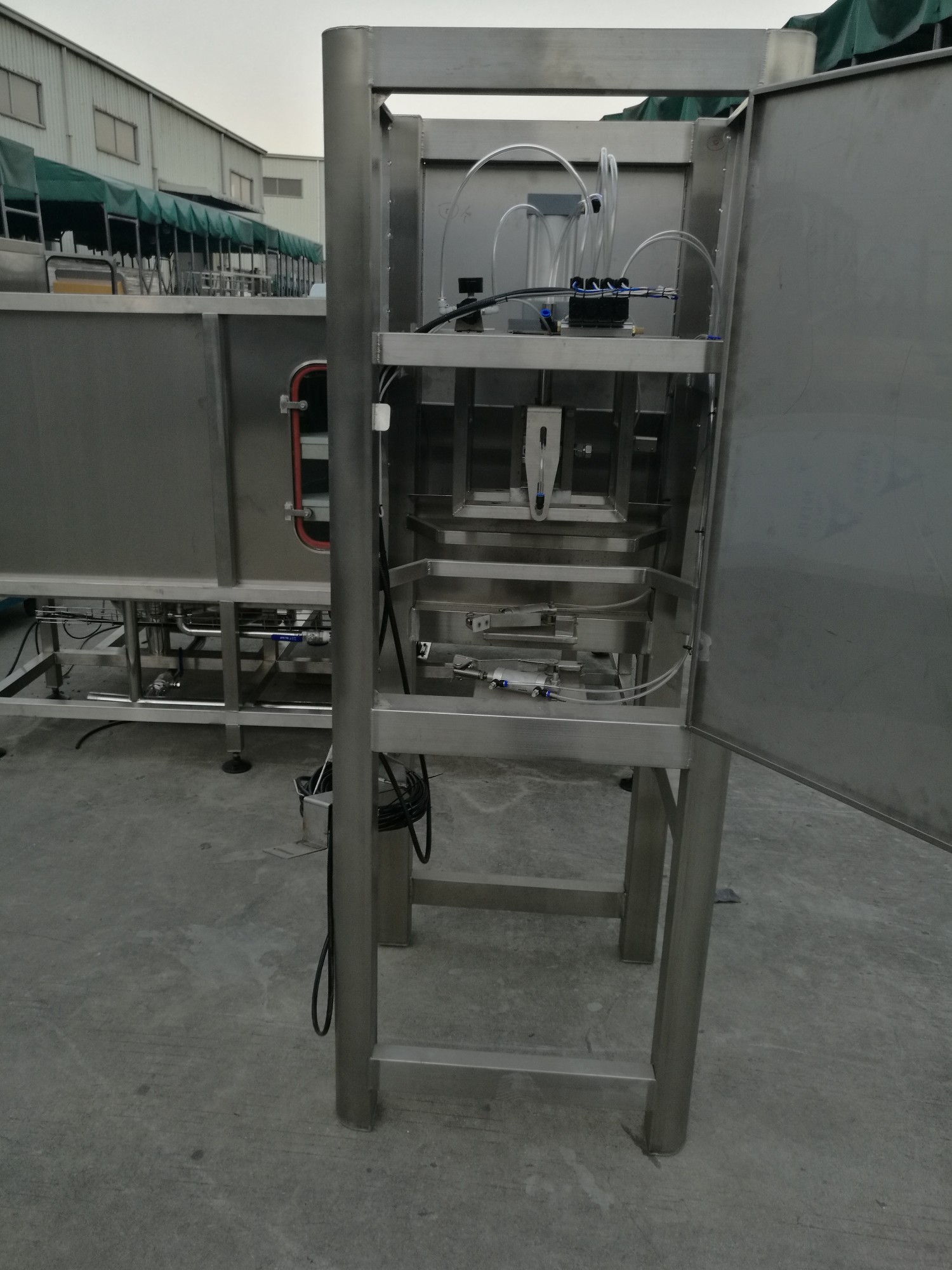 該桶裝水拔蓋機(jī)是目前投放市場(chǎng)不久的一款新型機(jī)型,改變了以往人工或半自動(dòng)拔蓋速度慢、勞動(dòng)量大的缺點(diǎn),真正實(shí)現(xiàn)了全自動(dòng)生產(chǎn),大大降低了工人勞動(dòng)強(qiáng)度,提高了生產(chǎn)效率。該桶裝水拔蓋機(jī)機(jī)體采用304不銹鋼材料制造,外型美觀,結(jié)構(gòu)牢固。控制系統(tǒng)采用PLC控制,運(yùn)行過程穩(wěn)定。